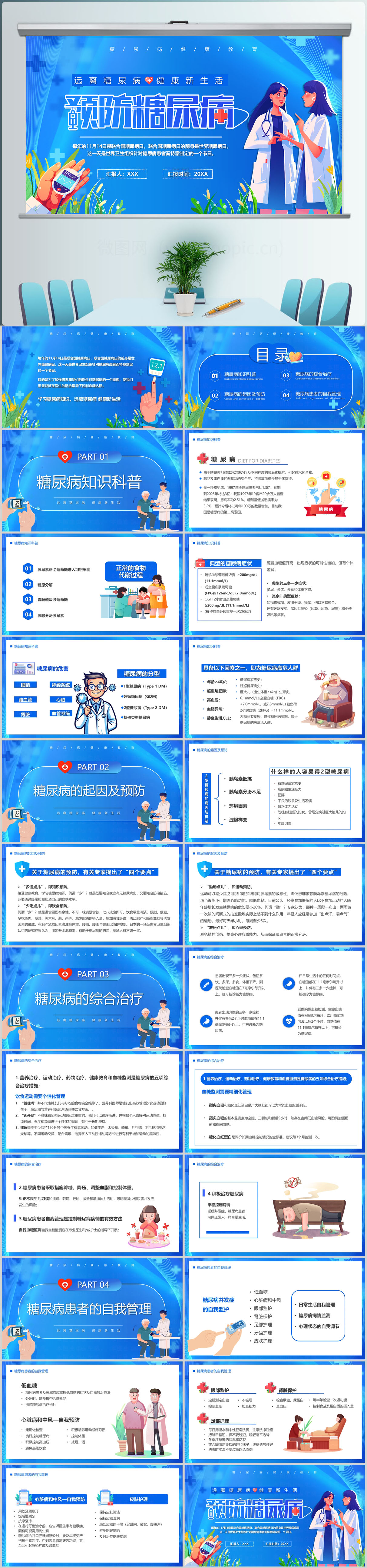 糖尿病预防与治疗方案医疗行业工作汇报PPT模板设计