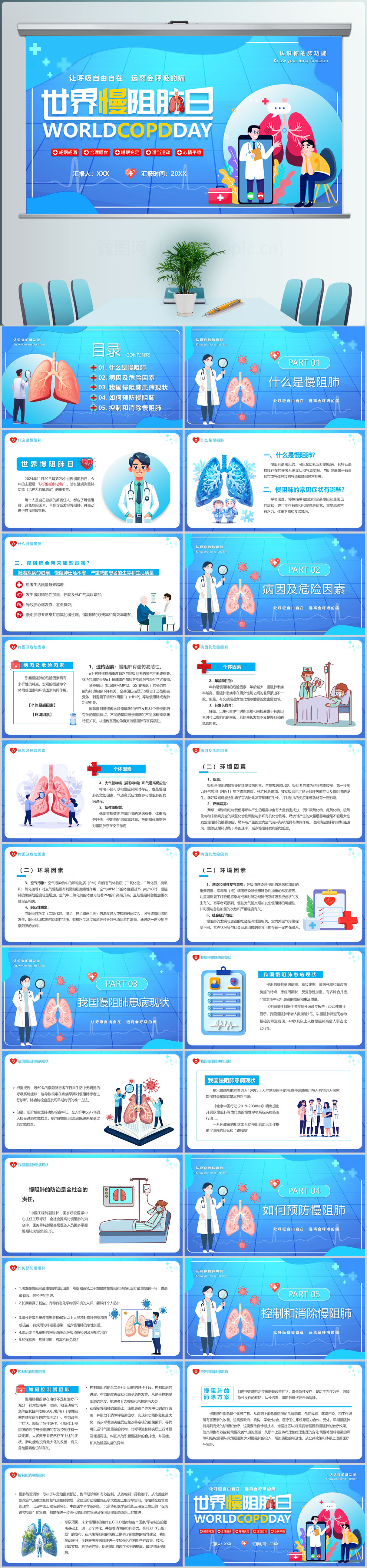 医疗通用世界慢阻肺日科普预防PPT模板设计