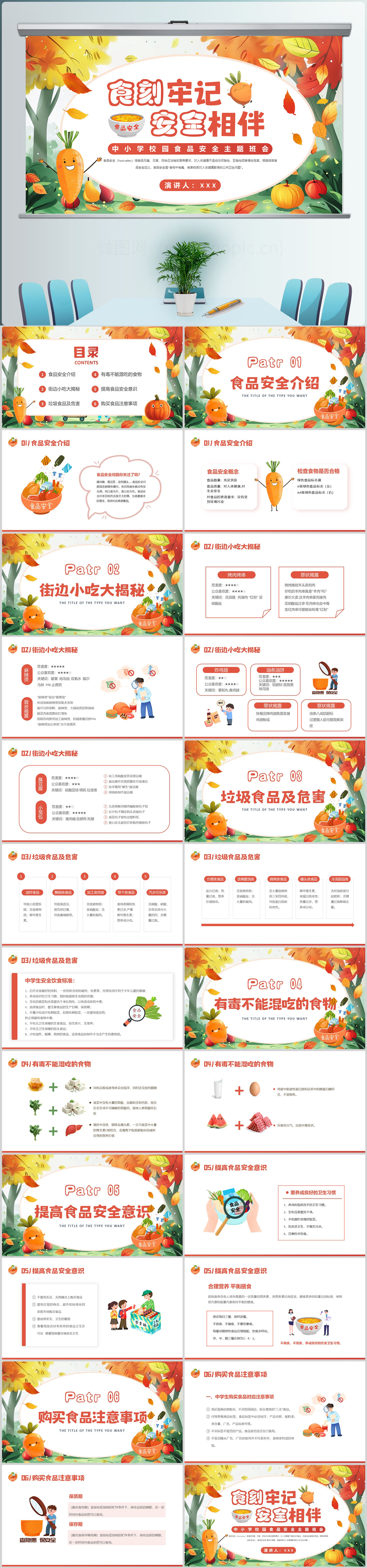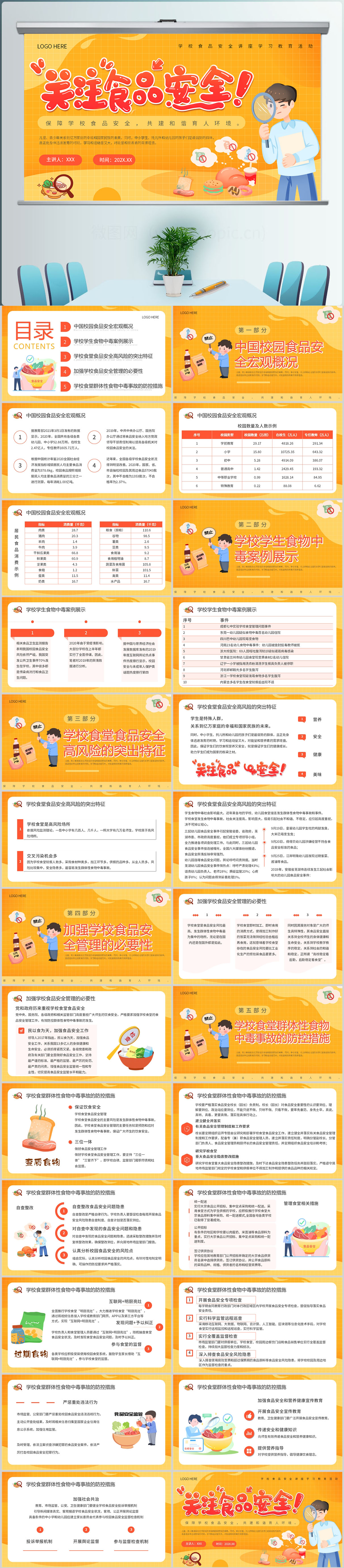 橘色卡通学校食品安全讲座PPT模板设计