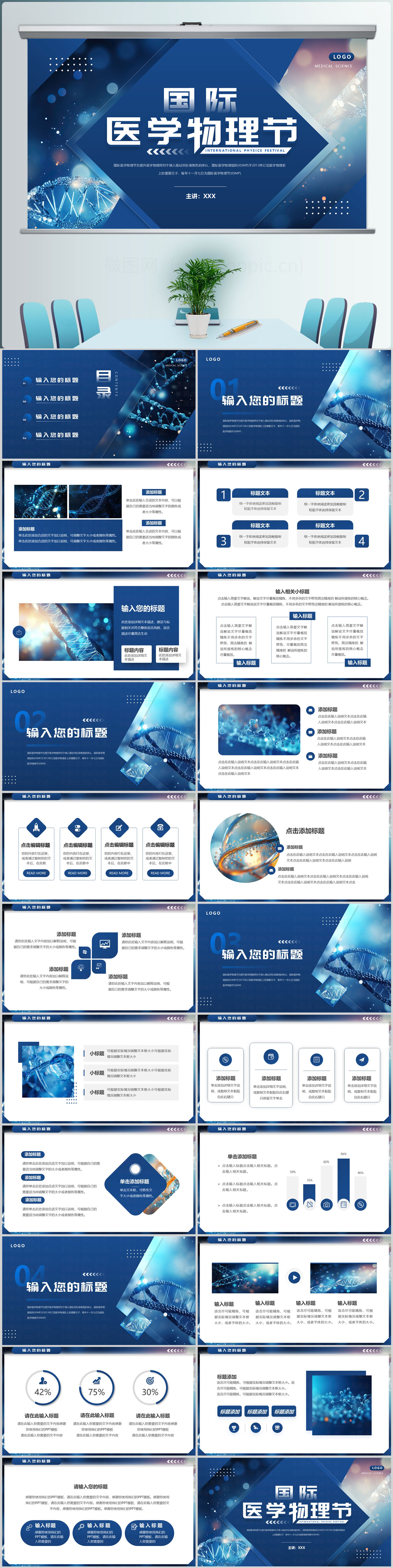 简约风国际医学物理节PPT通用模板设计