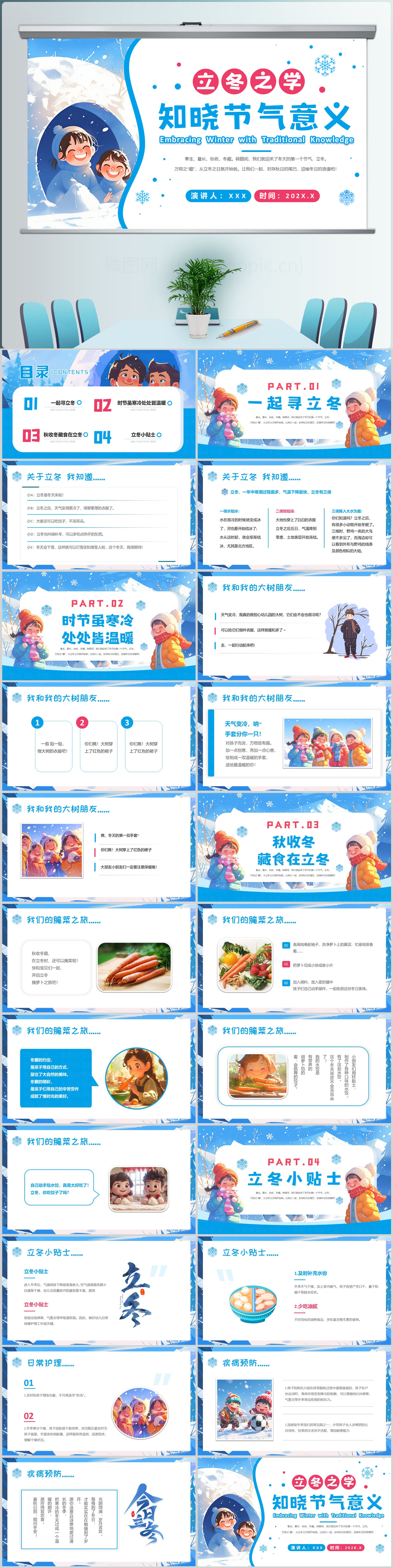蓝色知传统迎立冬传统节气PPT模板设计