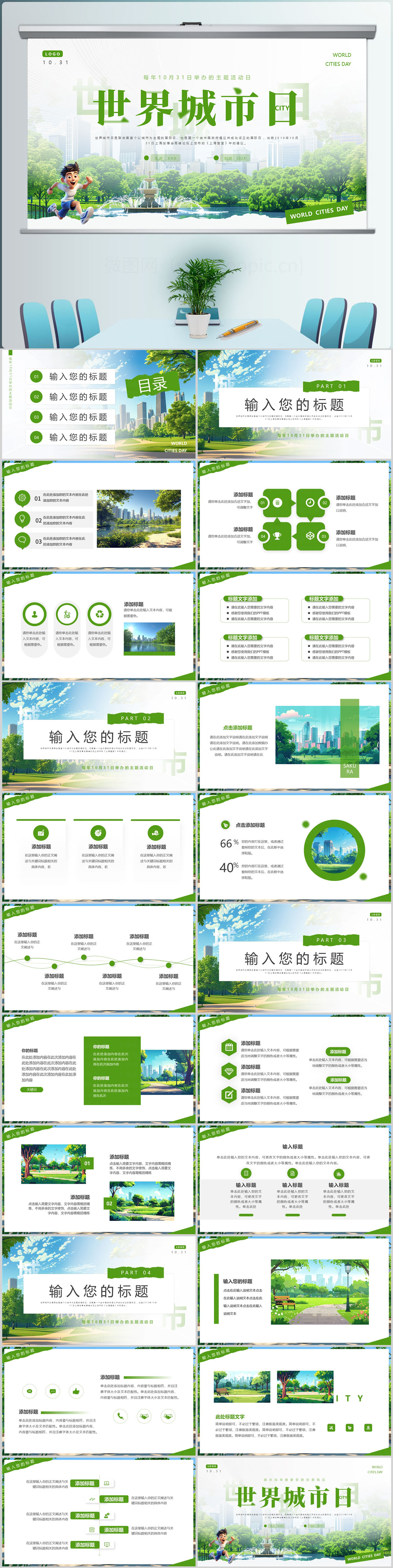 简约风世界城市日PPT通用模板