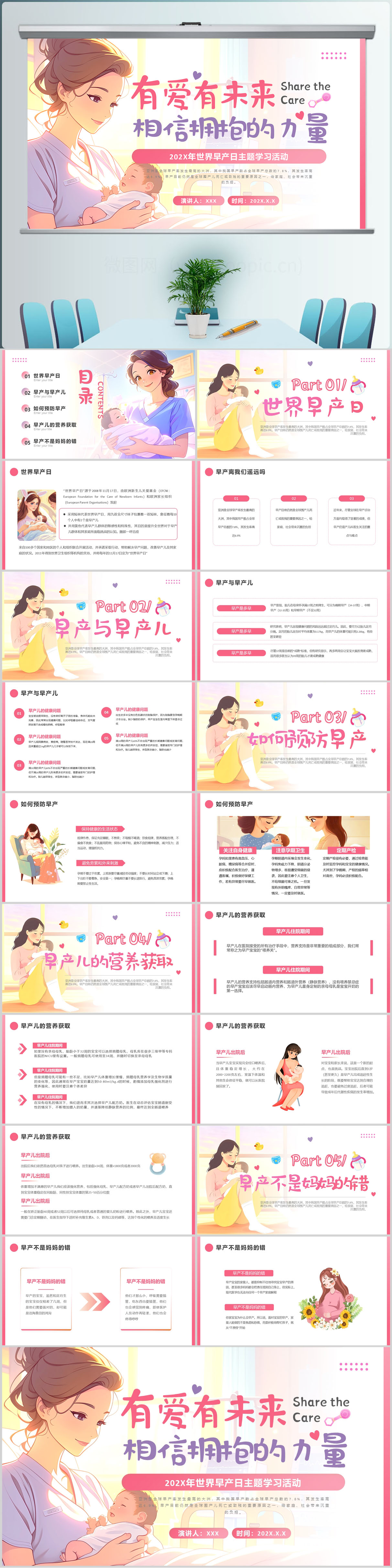 世界早产儿主题活动学习PPT模版设计