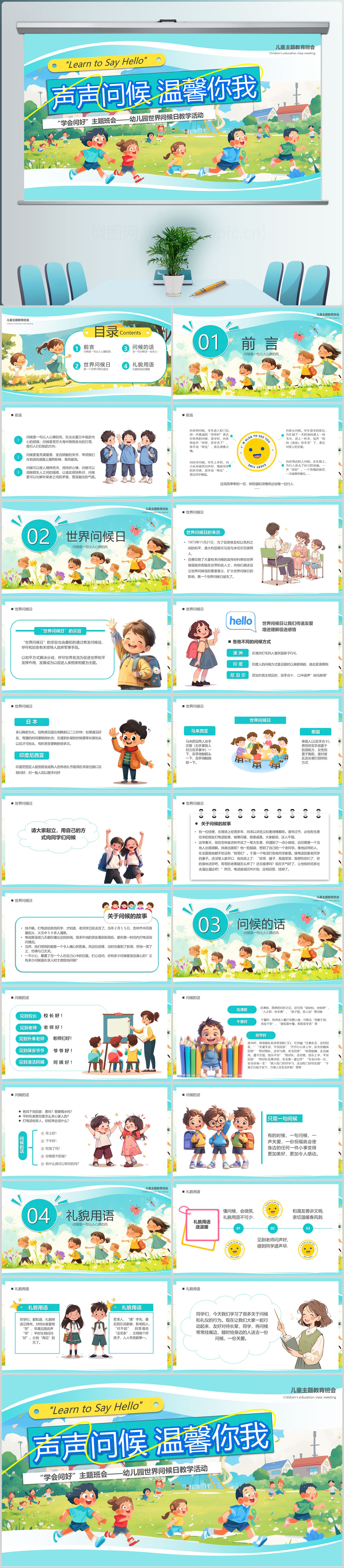 声声问候温馨你我PPT模板