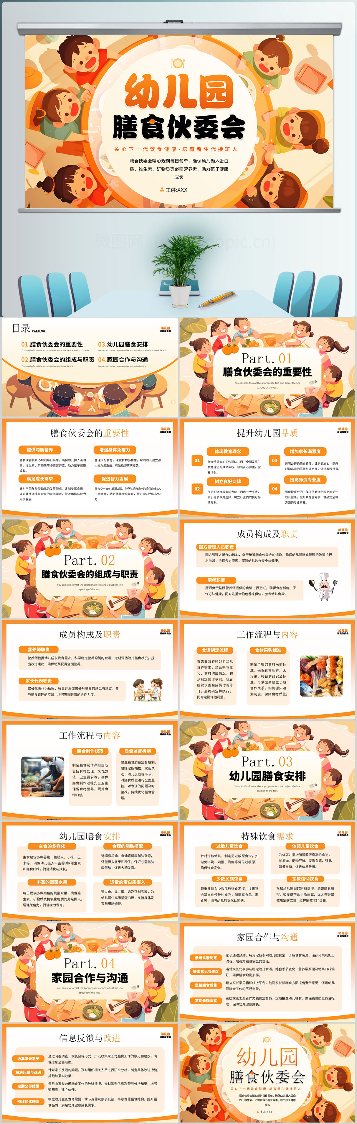 卡通风幼儿园膳食伙委员会PPT模板设计