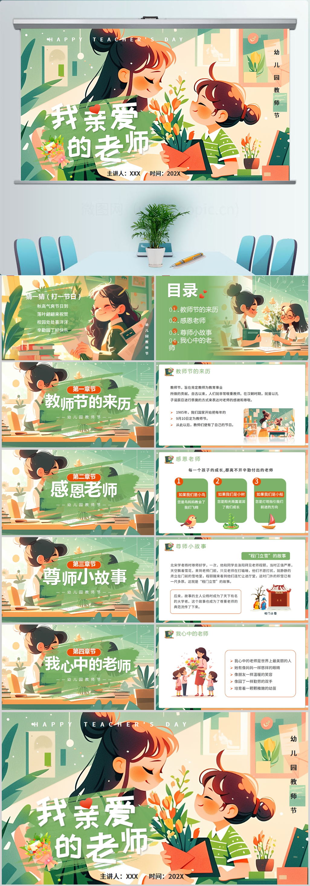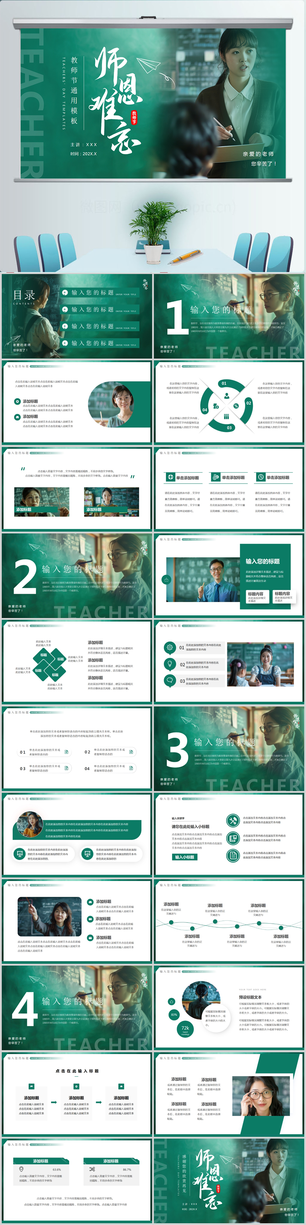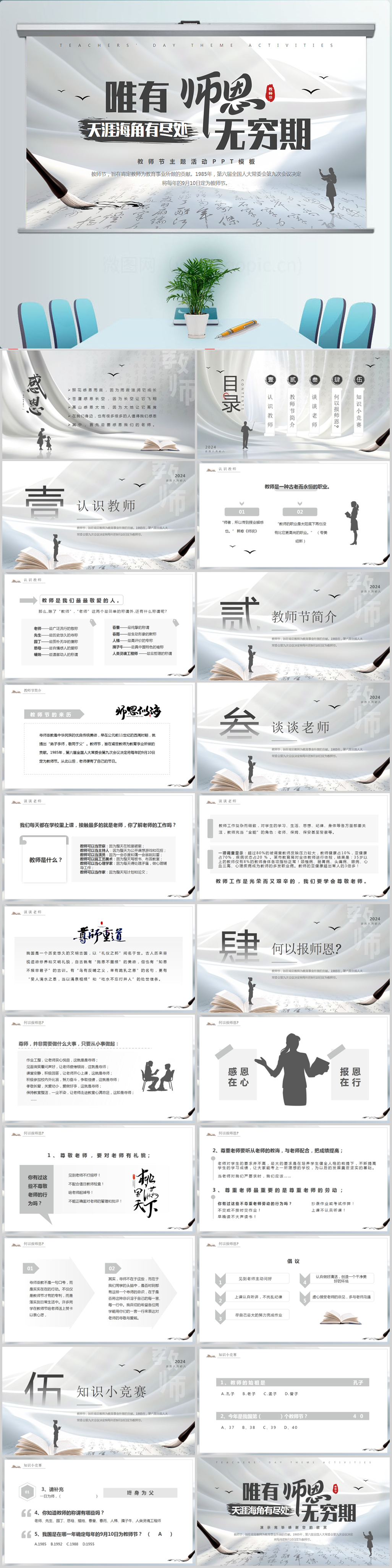 简约师恩难忘感恩教师节主题活动PPT模版设计