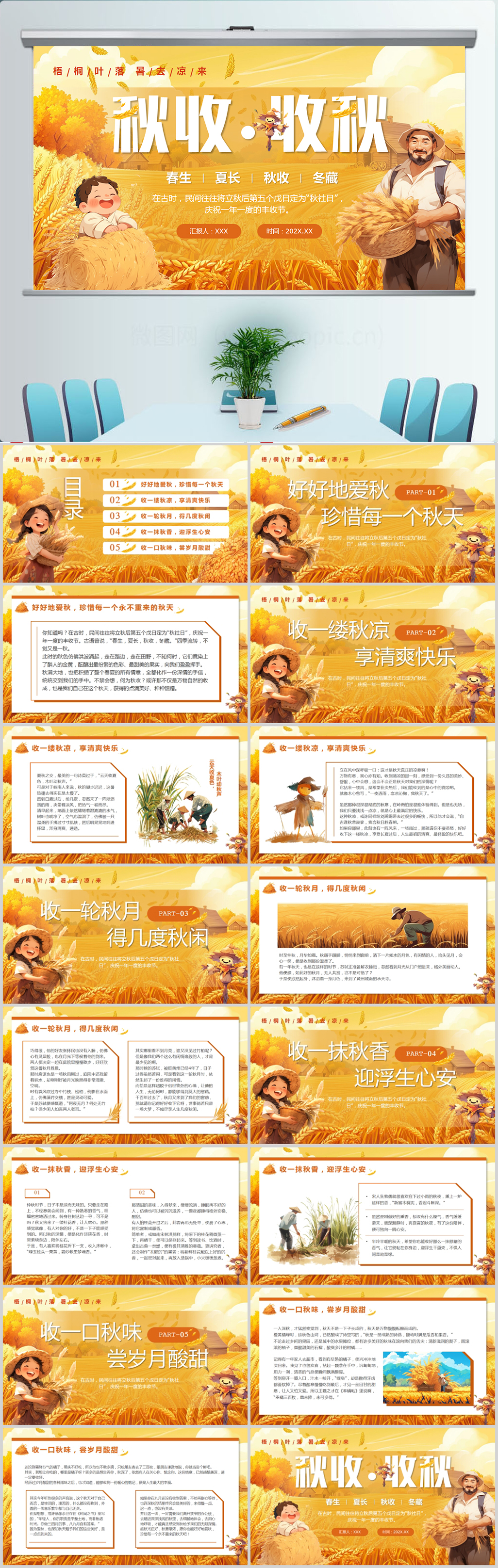 秋天秋收丰收的季节秋天秋季PPT模板设计