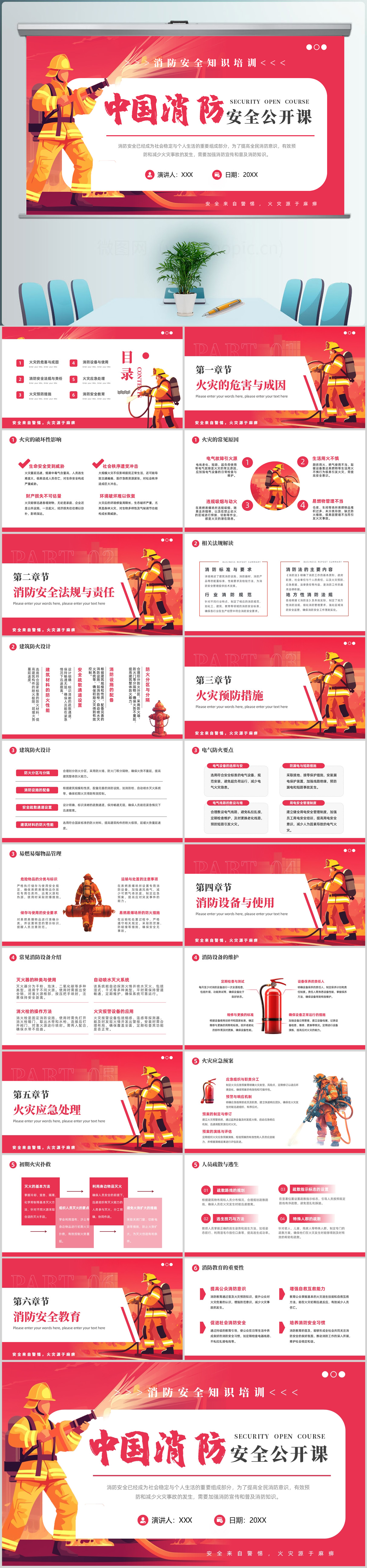 红色简约119消防日中国消防安全公开课ppt模板