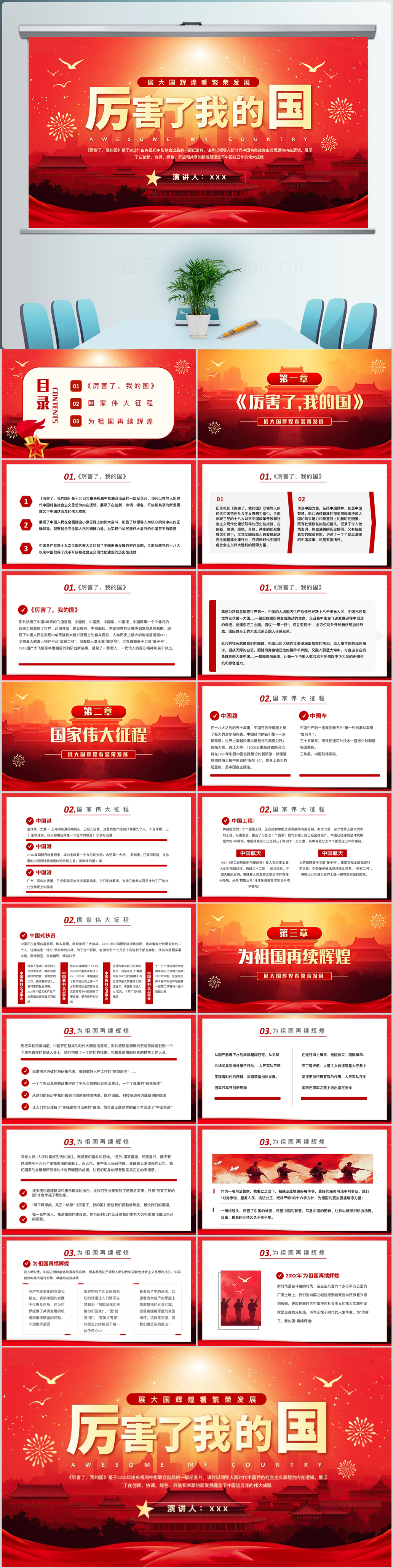 红色喜庆厉害了我的国国庆节党课ppt模板