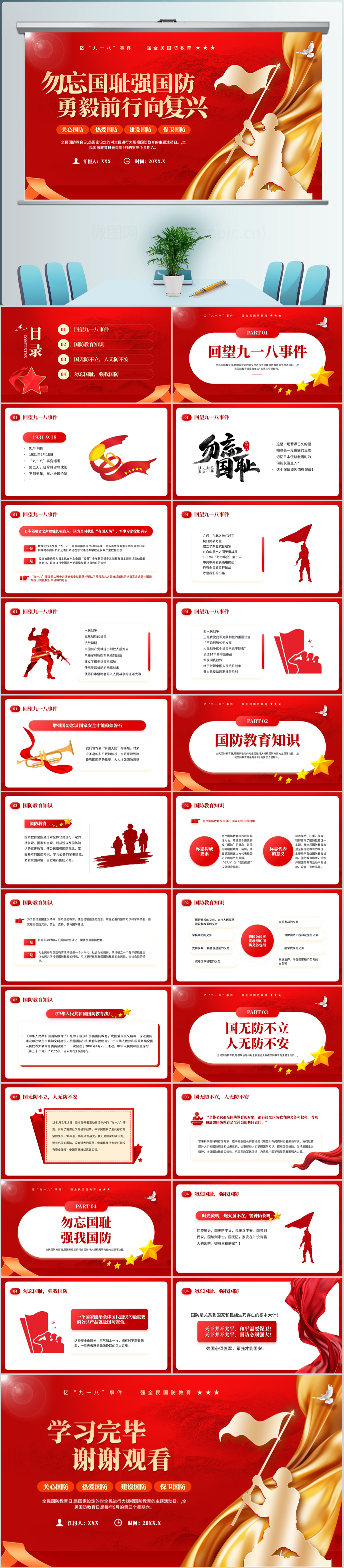 勿忘国耻九一八事变纪念日暨国防教育日主题宣传党课PPT模板