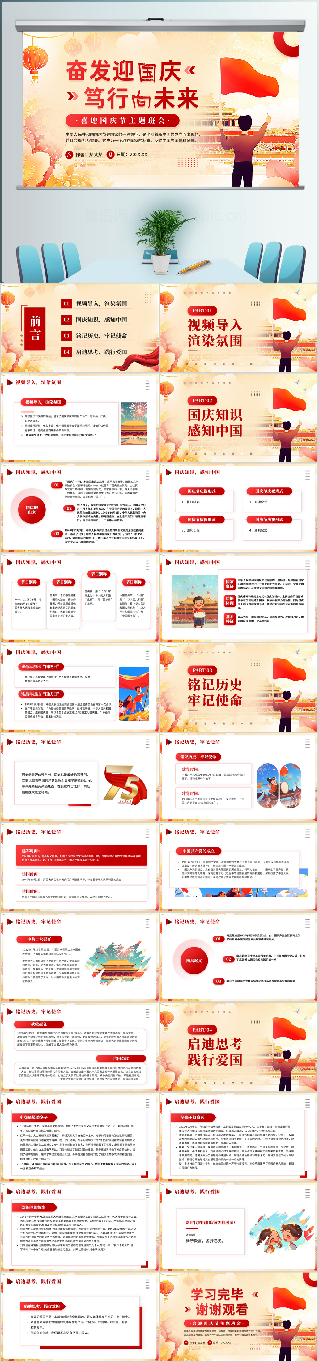 2024红色10.1十一国庆节笃行向未来主题班会ppt模板
