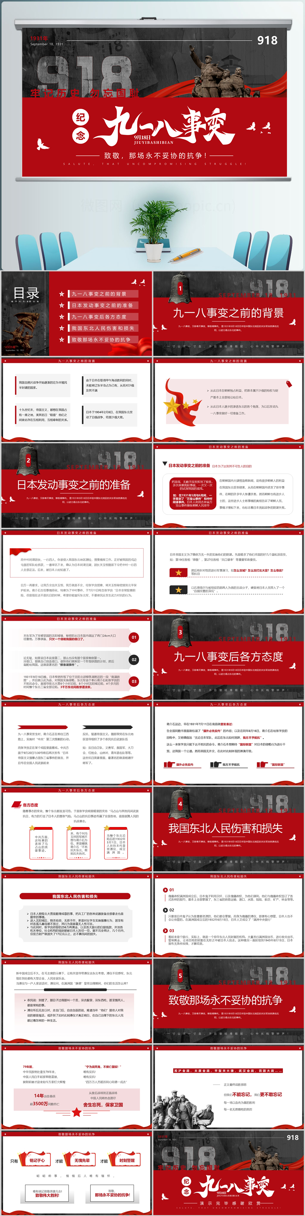 2024纪念九一八事变纪念日主题课件ppt模板