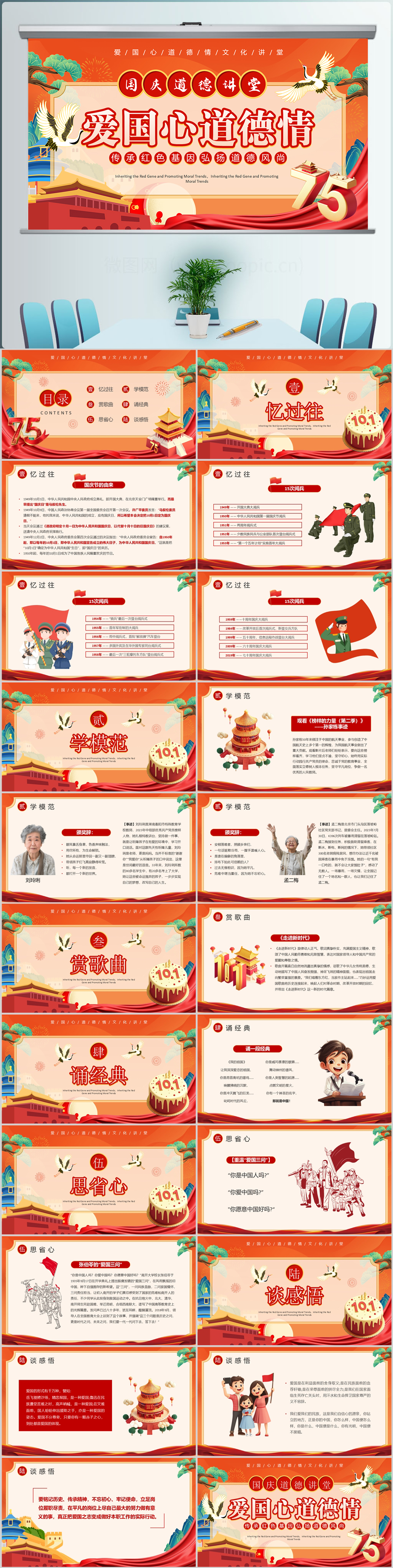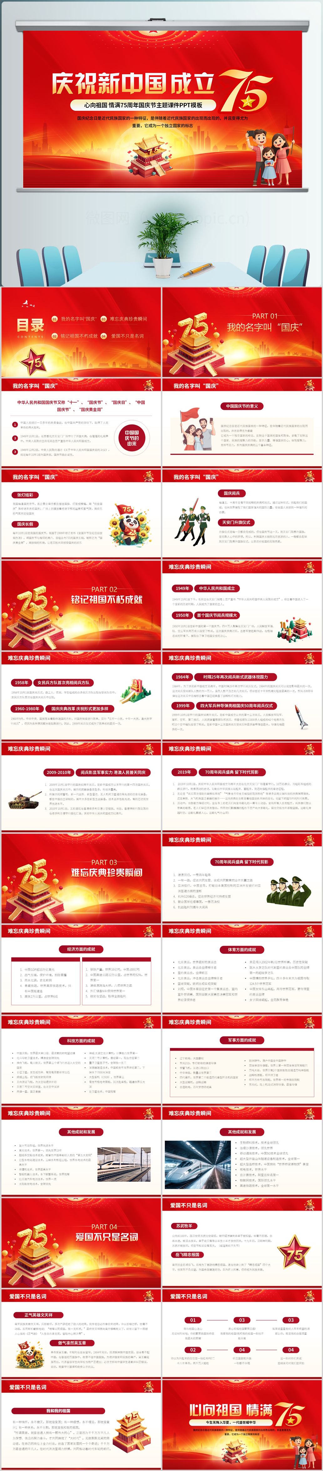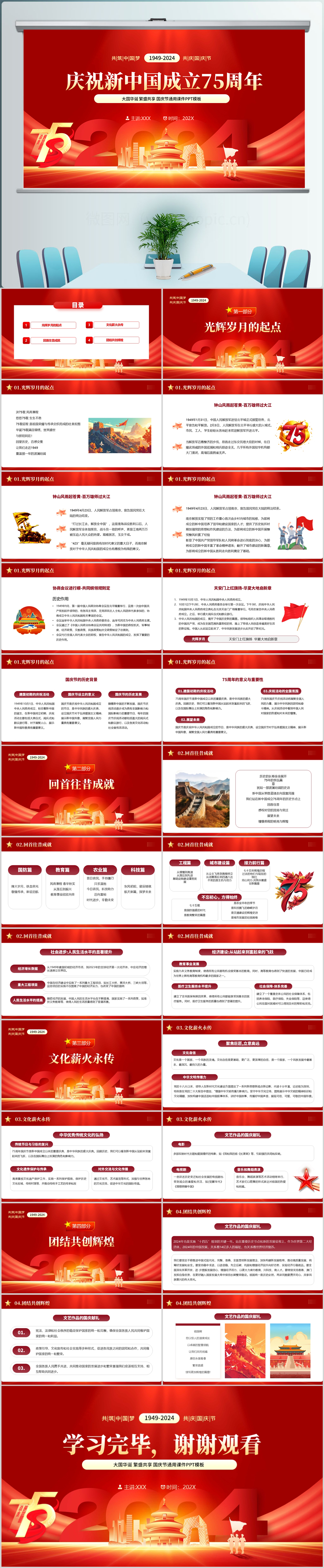 2024红色情满中国庆祝新中国成立75周年国庆节ppt模板