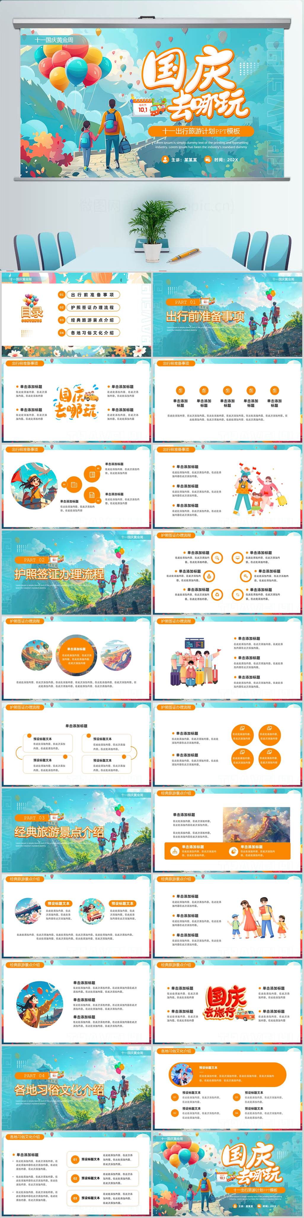 十一出行旅游计划PPT模板设计
