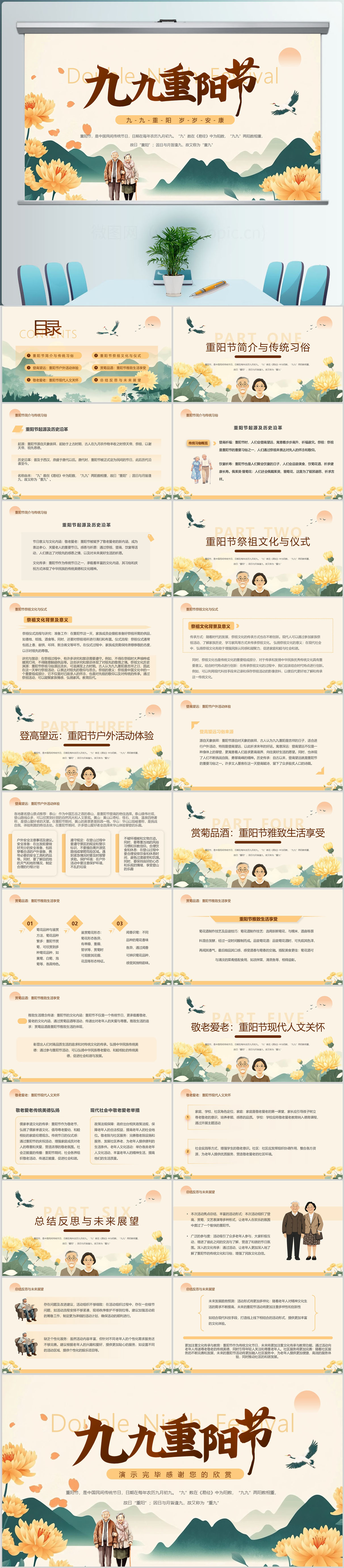 九九重阳节浓浓敬老情主题介绍班会课件PPT模板