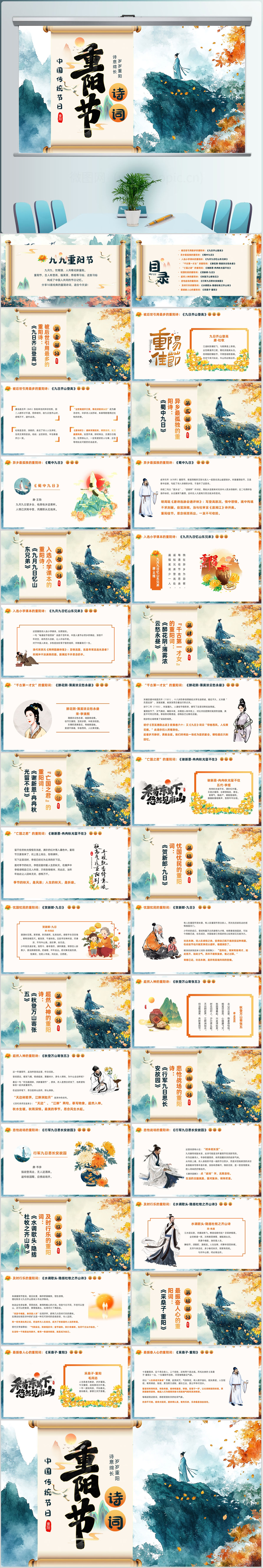 绿色古风押韵九九重阳节诗词介绍课件PPT模板