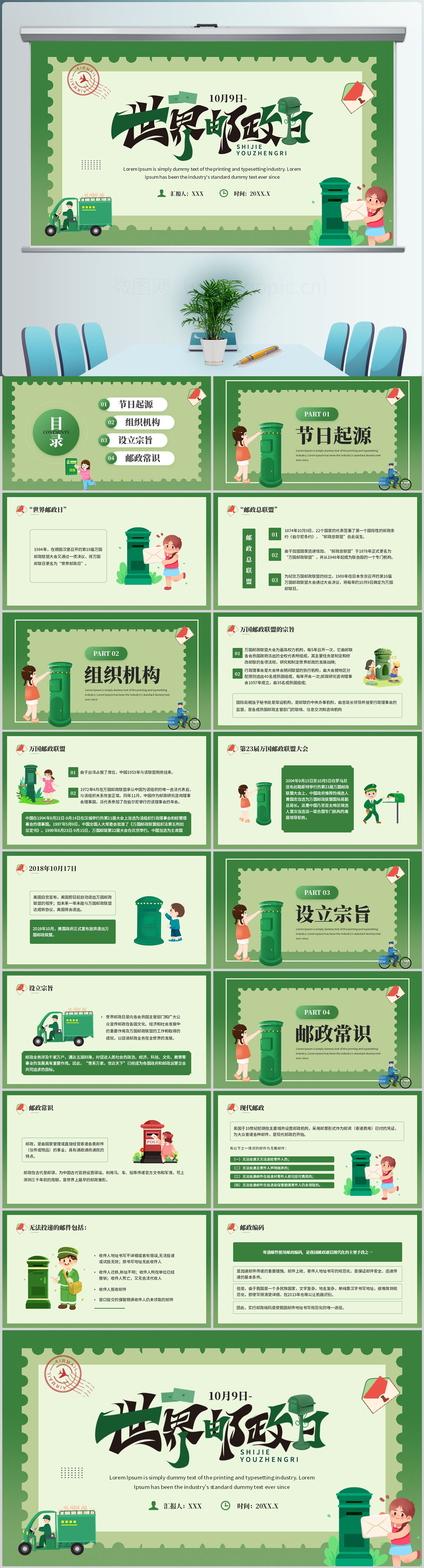 世界邮政日主题介绍ppt模板