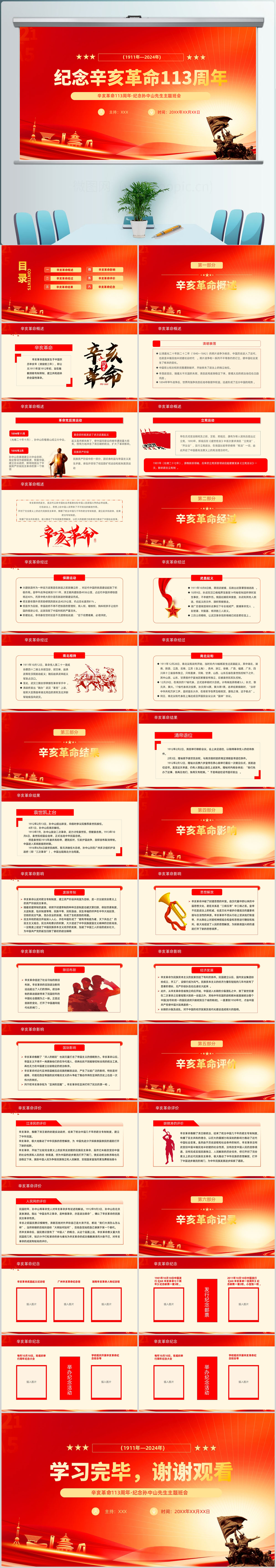 2024红色纪念辛亥革命113周年主题介绍课件ppt模板