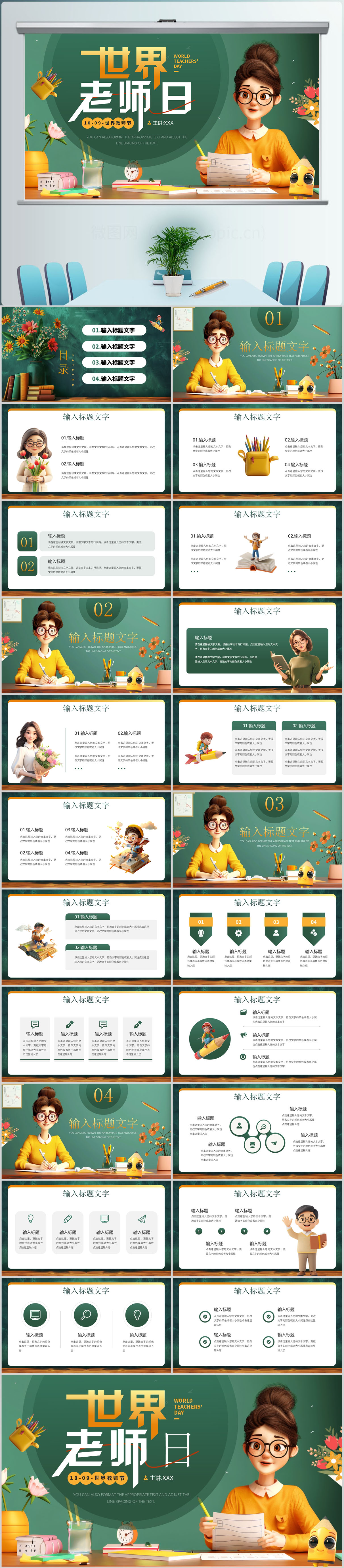 2024绿色黑板风世界教师日主题介绍课件PPT模板