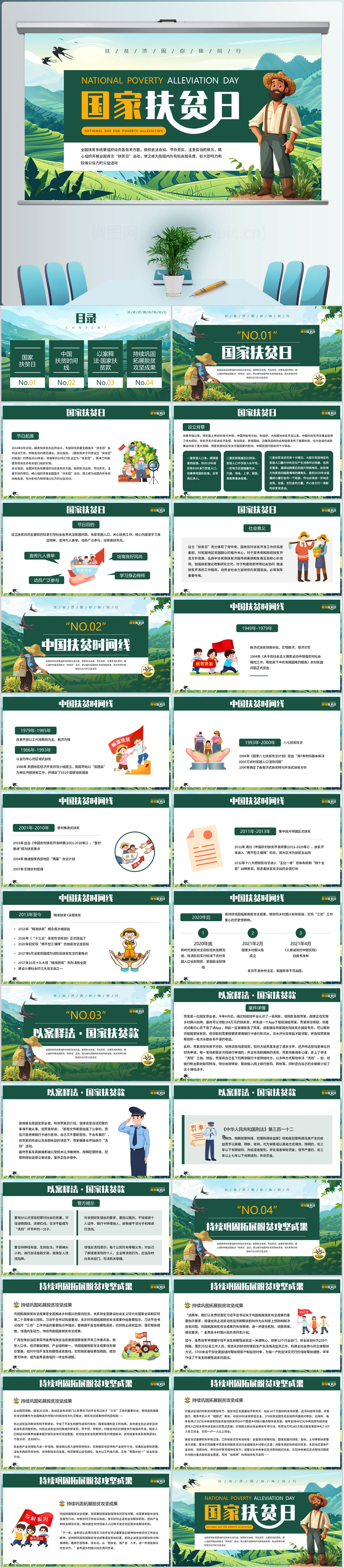 绿色风国家扶贫日主题介绍课件ppt模板