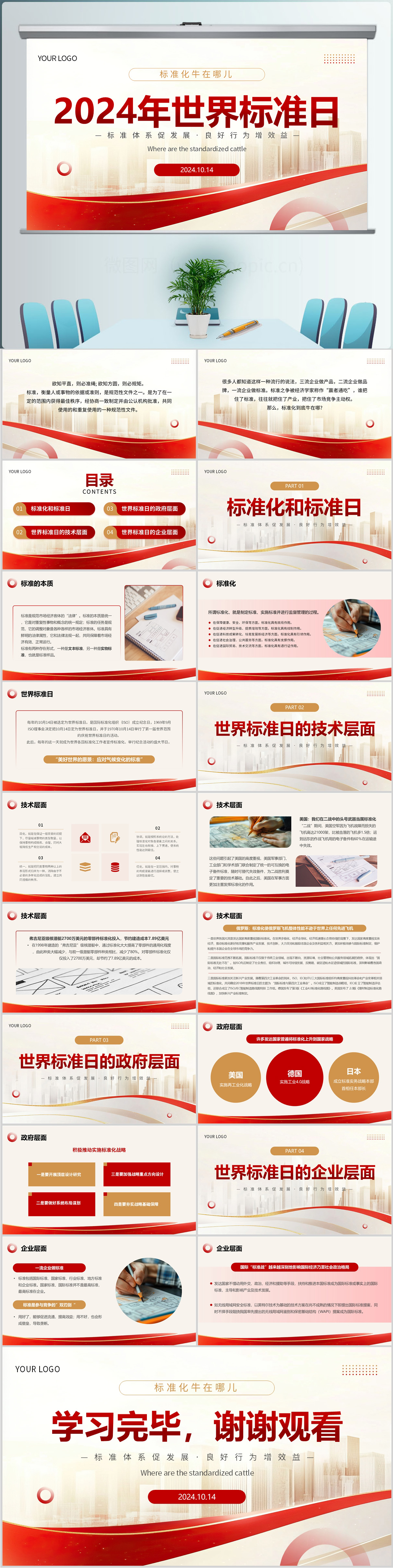 红色大气2024年世界标准日主题介绍ppt模板