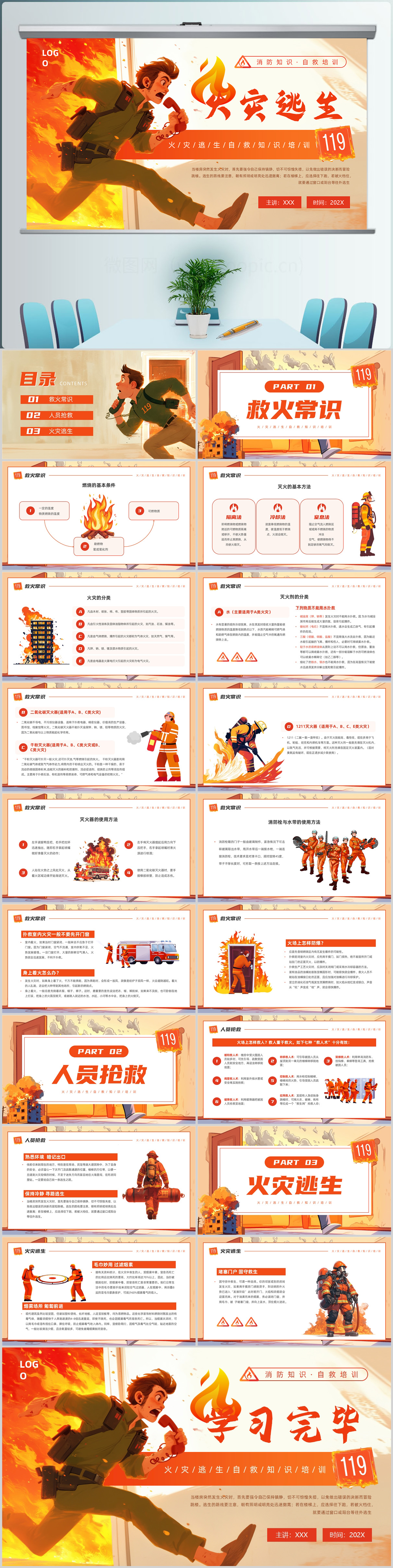 119消防宣传日消防知识·自救培训课件ppt模板