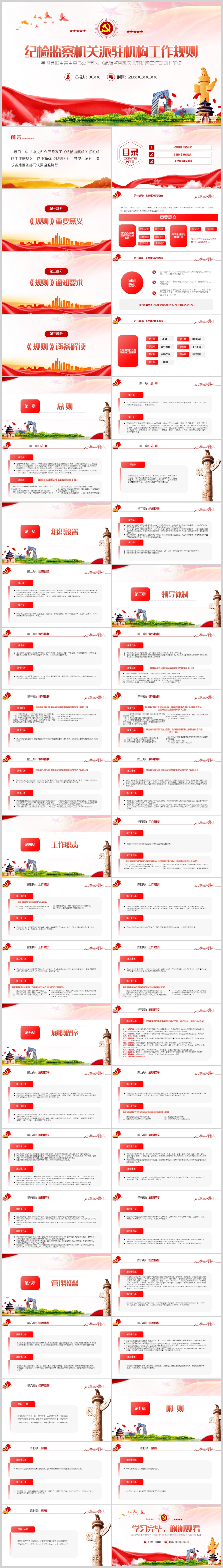 纪检监察机关派驻机构工作规则学习解读PPT模板(内含WORD演讲稿)