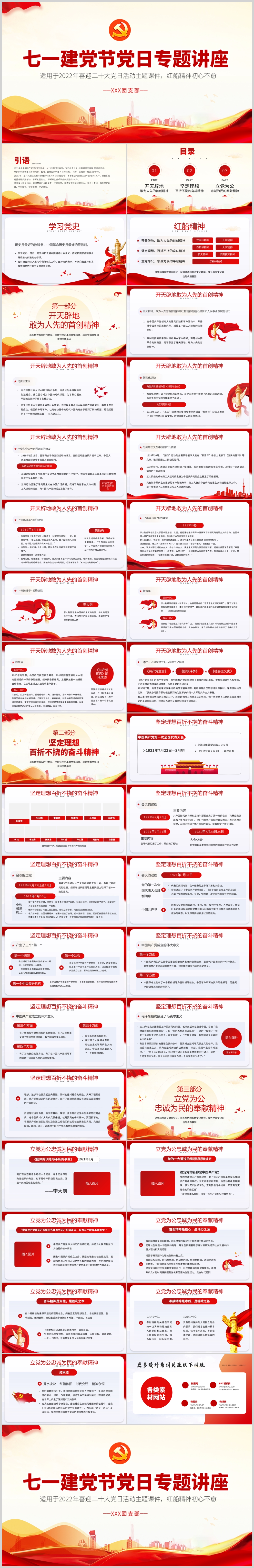 2022年七一建党节喜迎二十大党日活动主题课件PPT模板