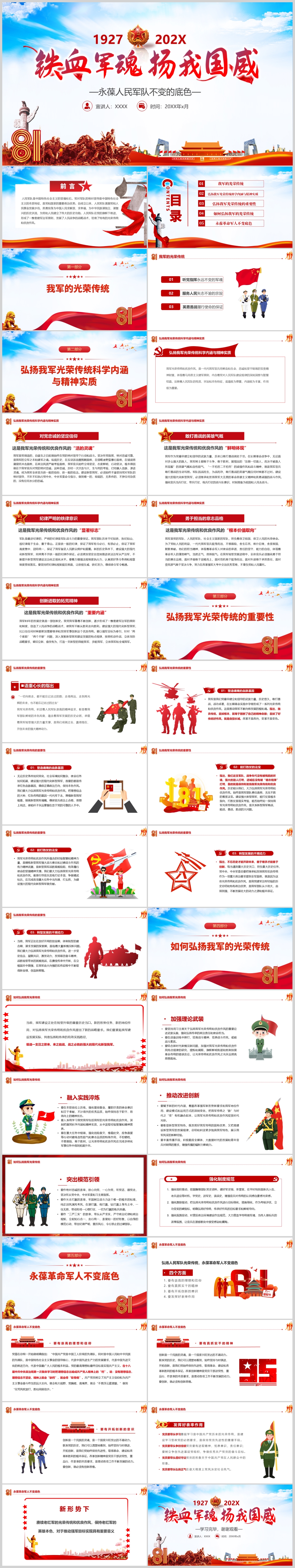 八一建军节铁血军魂扬我国威主题宣传教育党课PPT模板