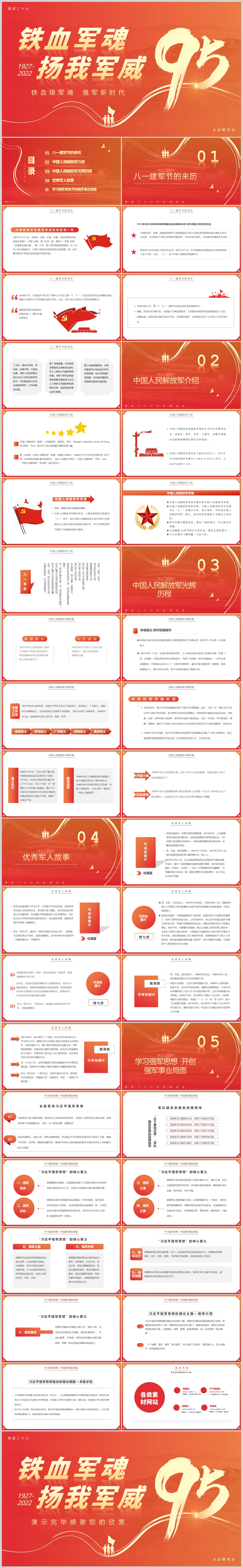 八一建军节95周年铁血军魂扬我军威部队宣传教育党课PPT模板