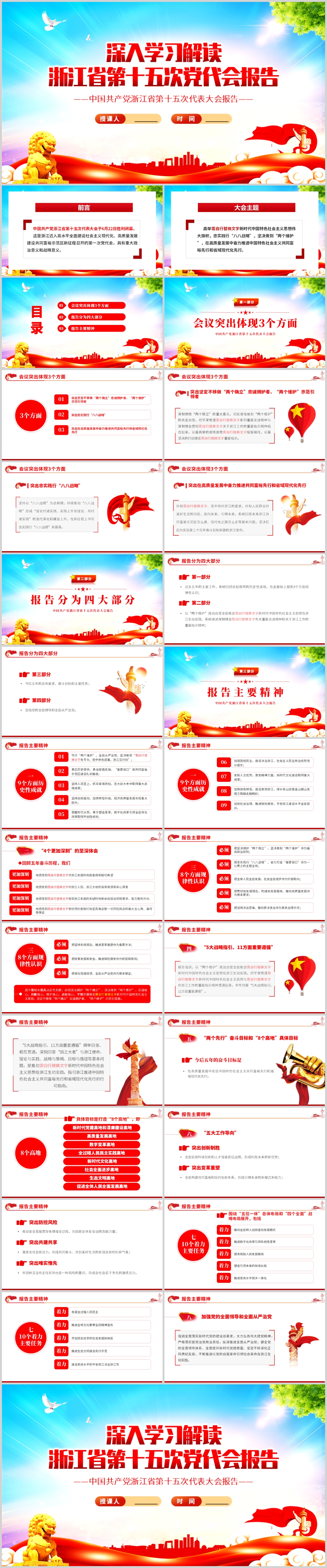 红色深入学习解读浙江省第十五次党代会报告党课PPT课件《含WORD演讲稿》