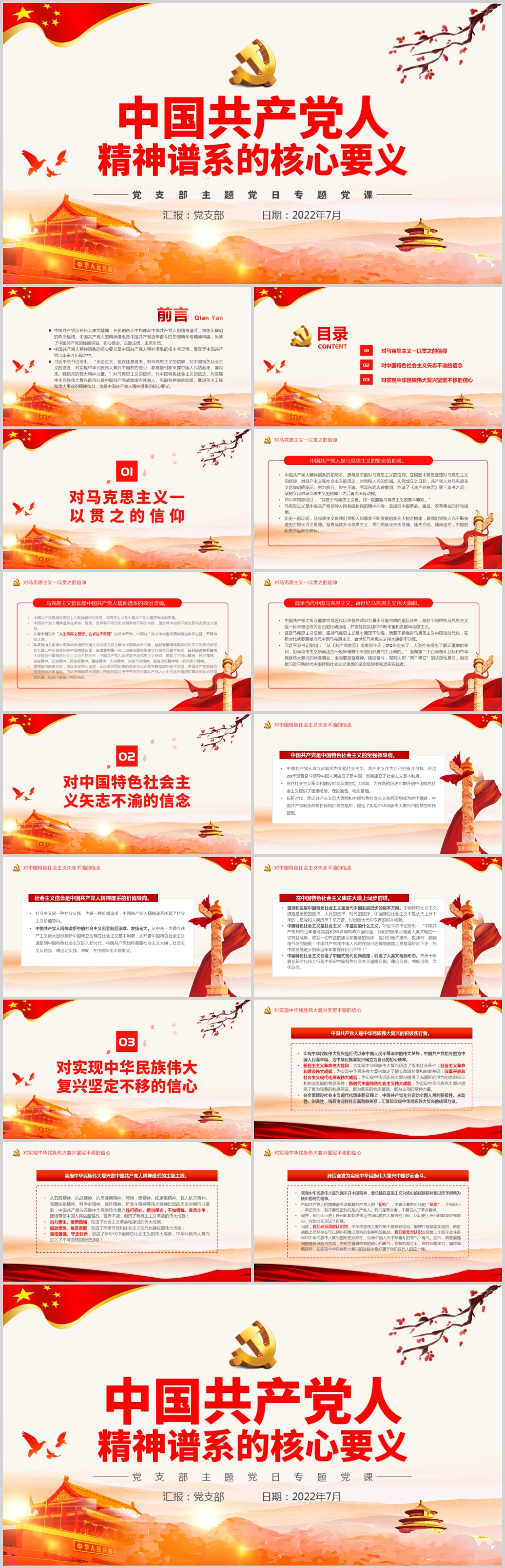 中国共产党人精神谱系的核心要义PPT模板《含WORD演讲稿》