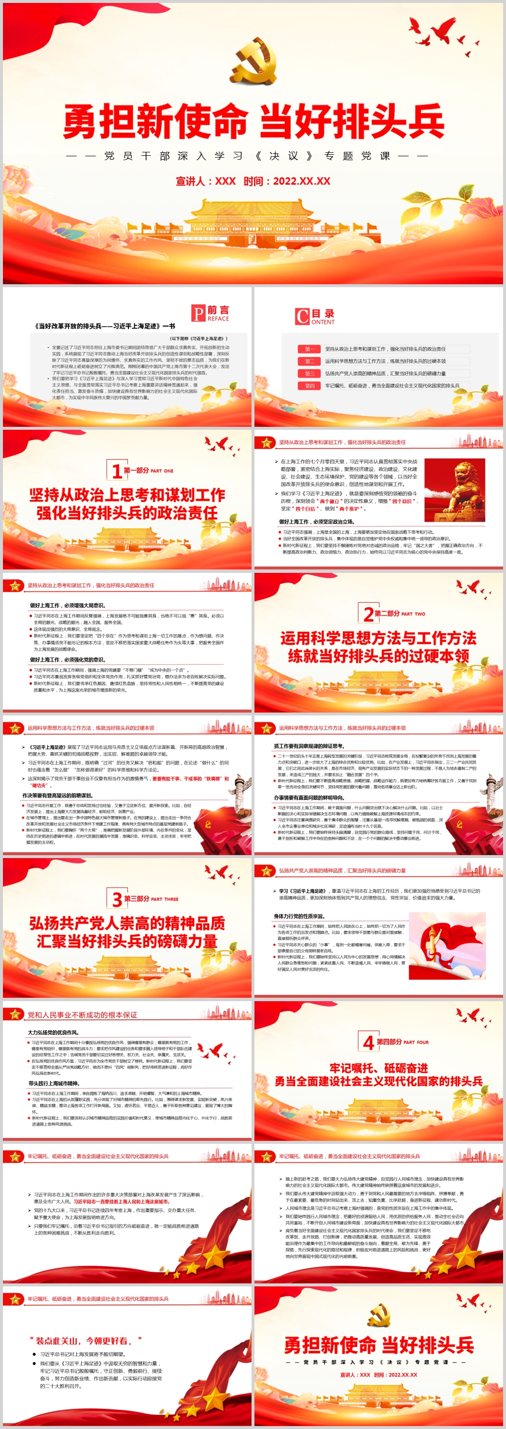 勇担新使命当好排头兵党课党建PPT模板《含WORD演讲稿》