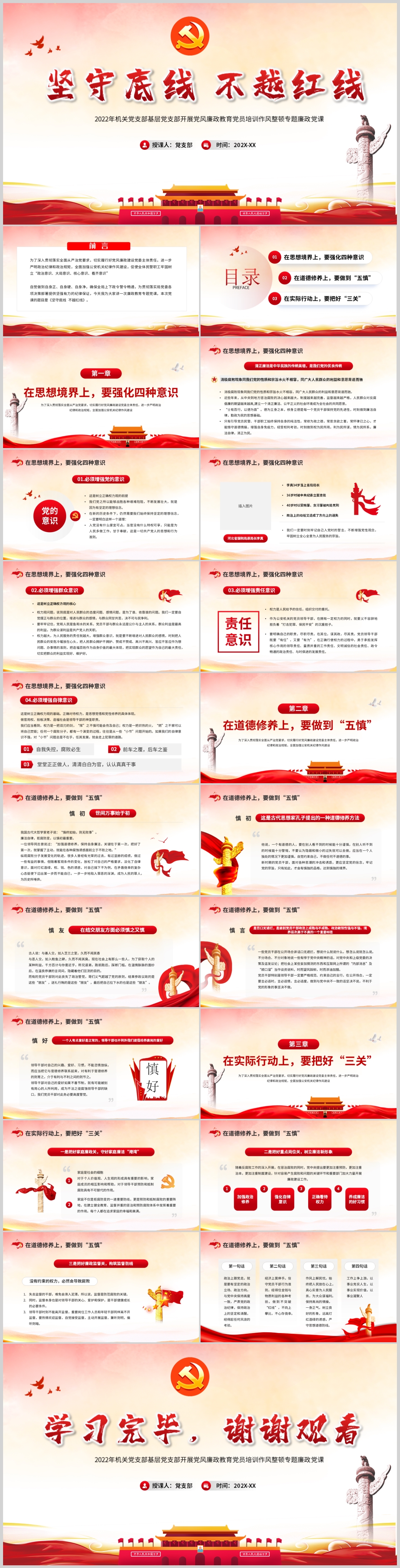 2022学习坚守底线不越红线廉政党性教育党建微党课ppt模板(内含WORD演讲稿)