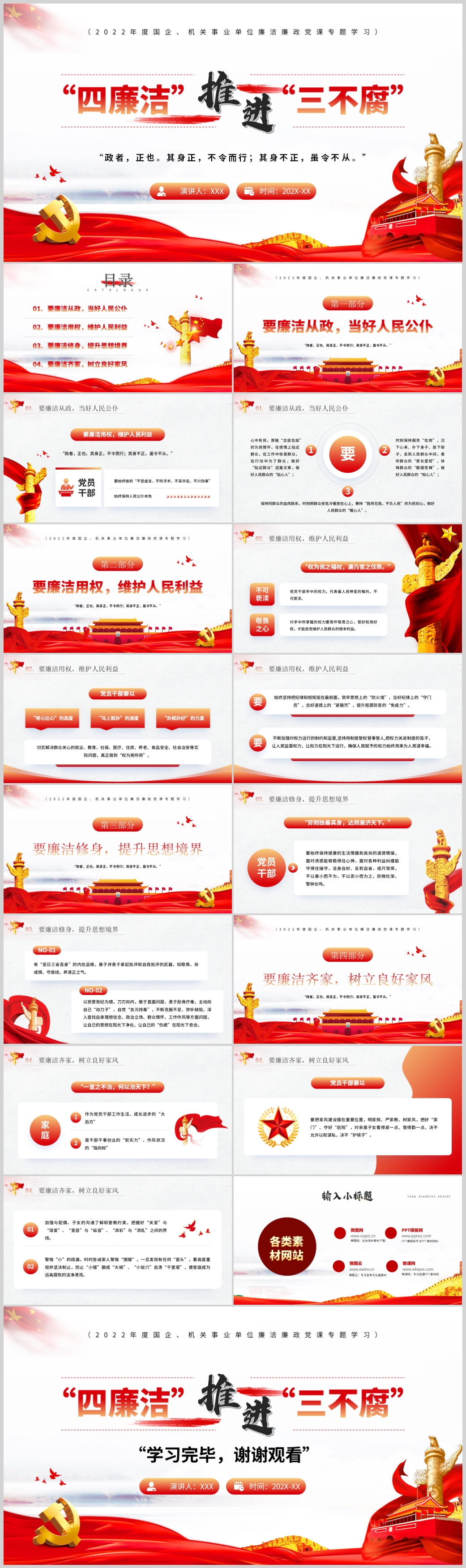学习“四廉洁”推进“三不腐”廉政党课PPT模板(内含WORD演讲稿)