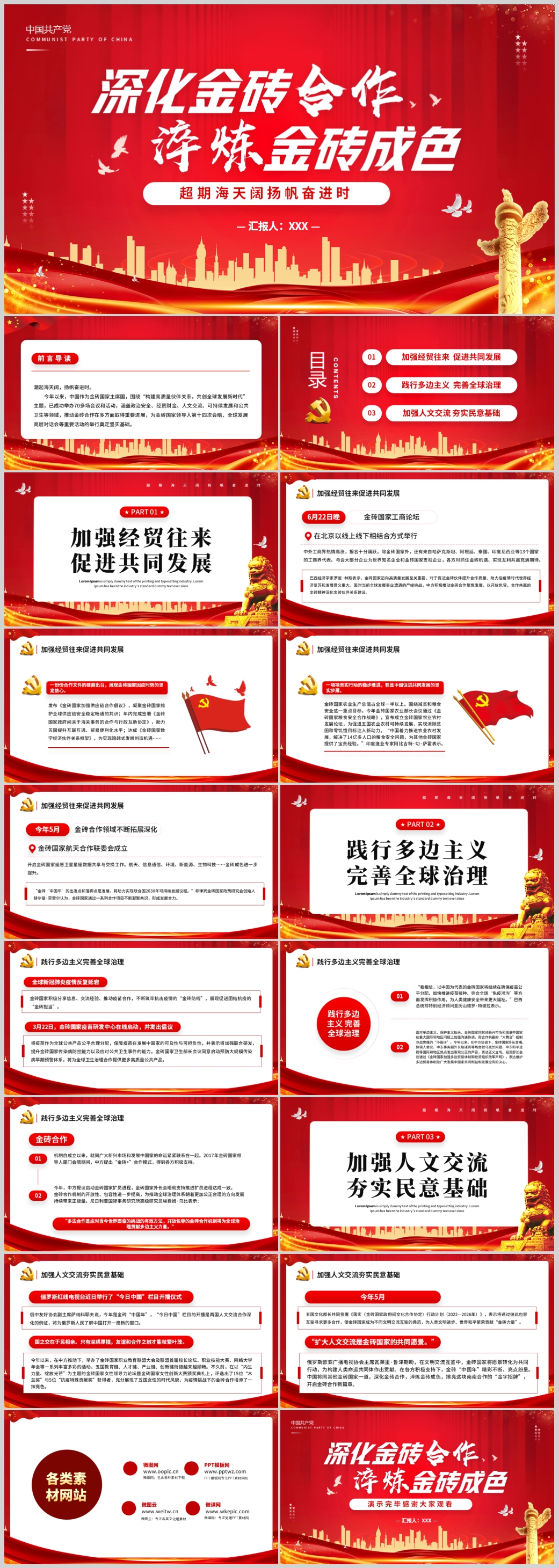 深化金砖合作淬炼金砖成色教育微党课PPT模板(内含WORD演讲稿)