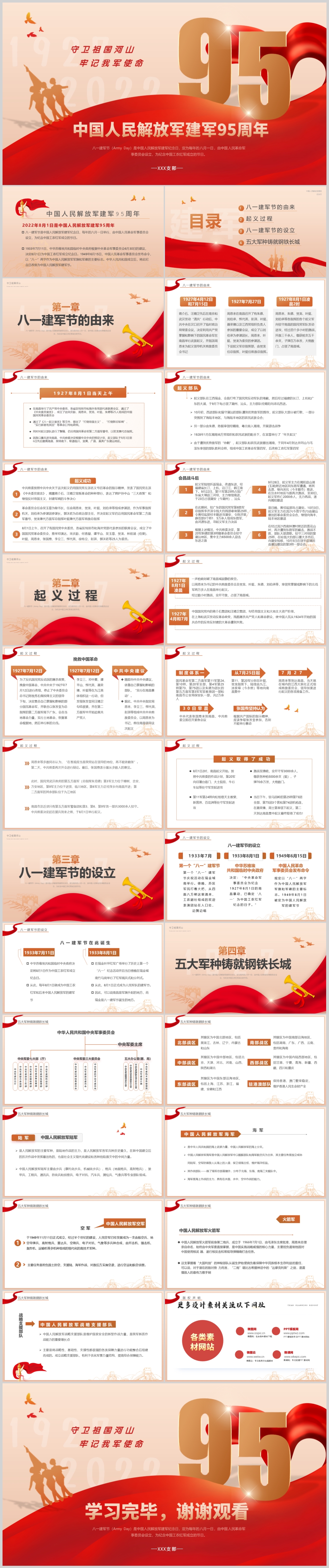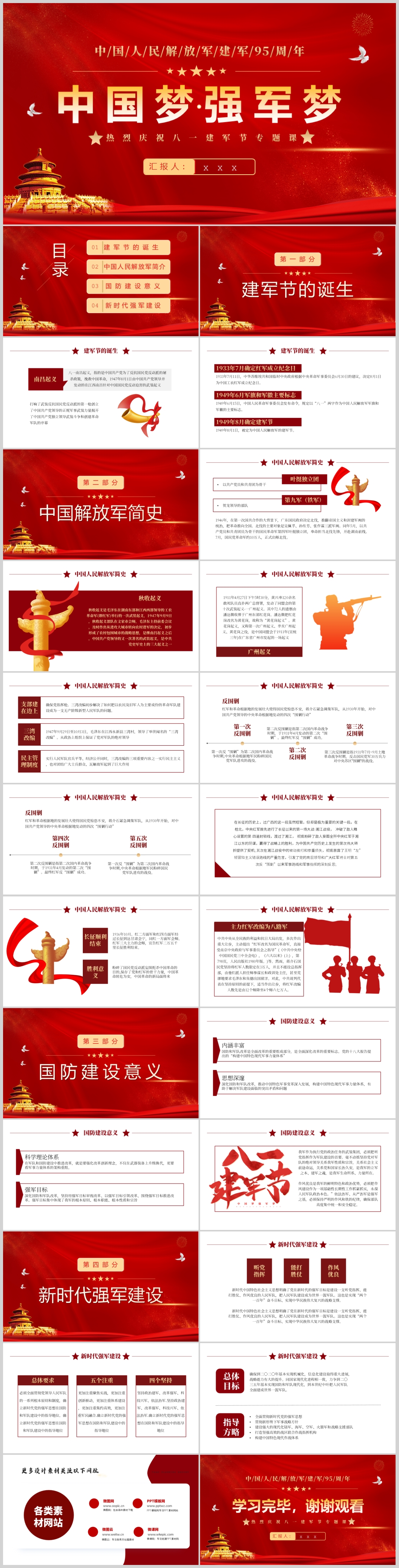 八一建军节95周年军队部队主题教育党课培训课件PPT模板