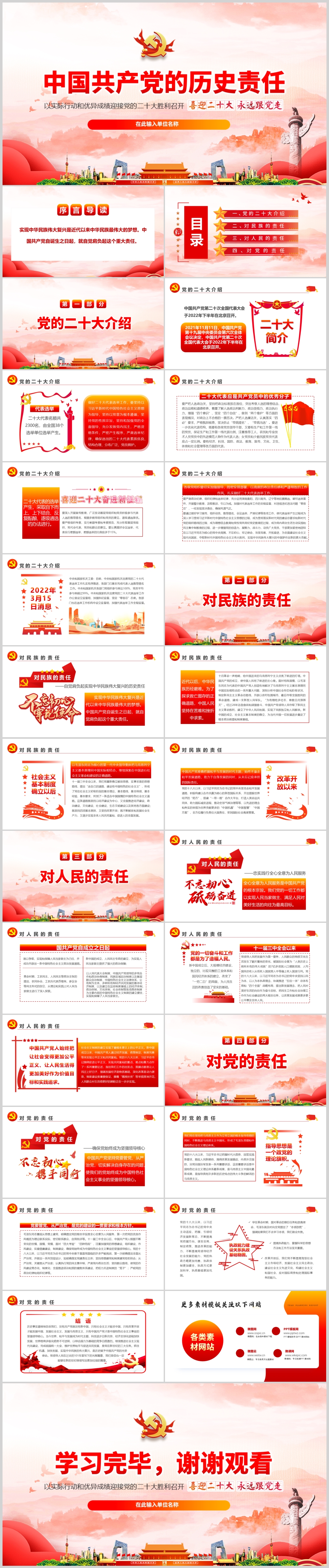 喜迎二十大中国共产党的历史责任主题党课PPT模板