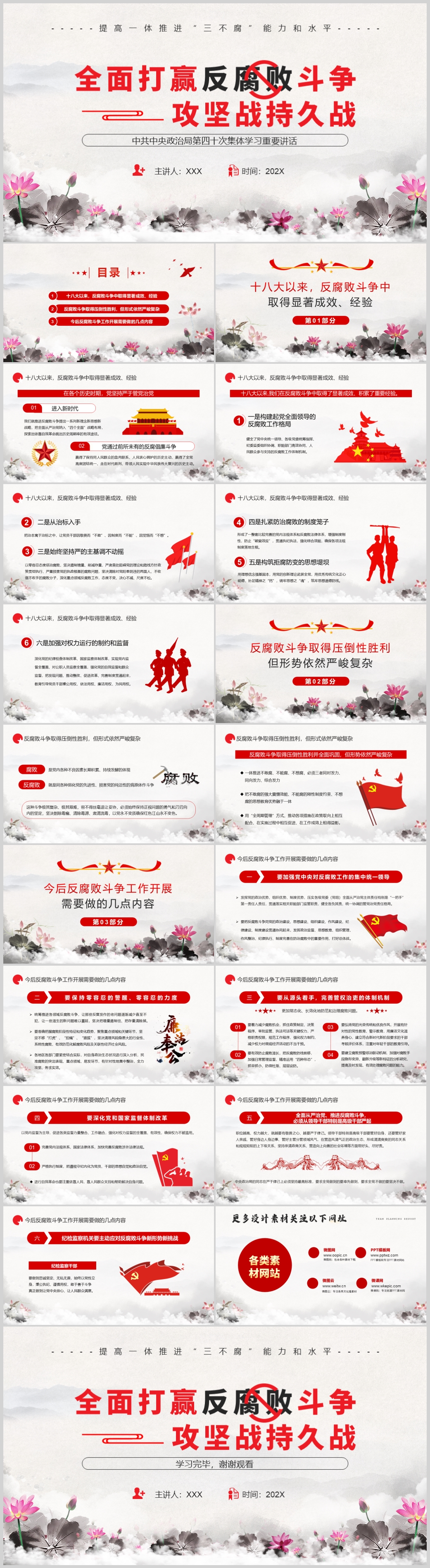 学习推进三不腐全面打赢反腐败斗争党风建党课pprt模板(内含WORD演讲稿)