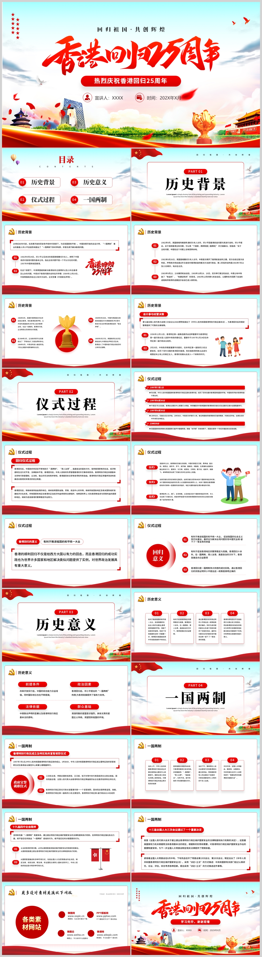 2022香港回归祖国25周年大会讲话解读党课PPT模板(内含WORD演讲稿)