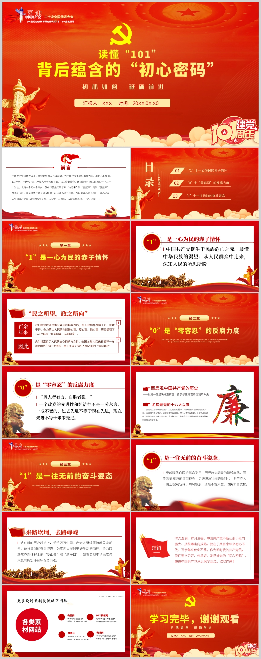 红色读懂101背后蕴含的初心密码党员教育党课PPT模板(内含WORD演讲稿)
