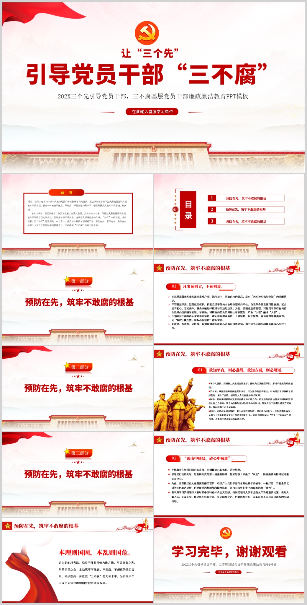 学习三个先引导党员干部三不腐专题党课PPT模板(内含WORD演讲稿)