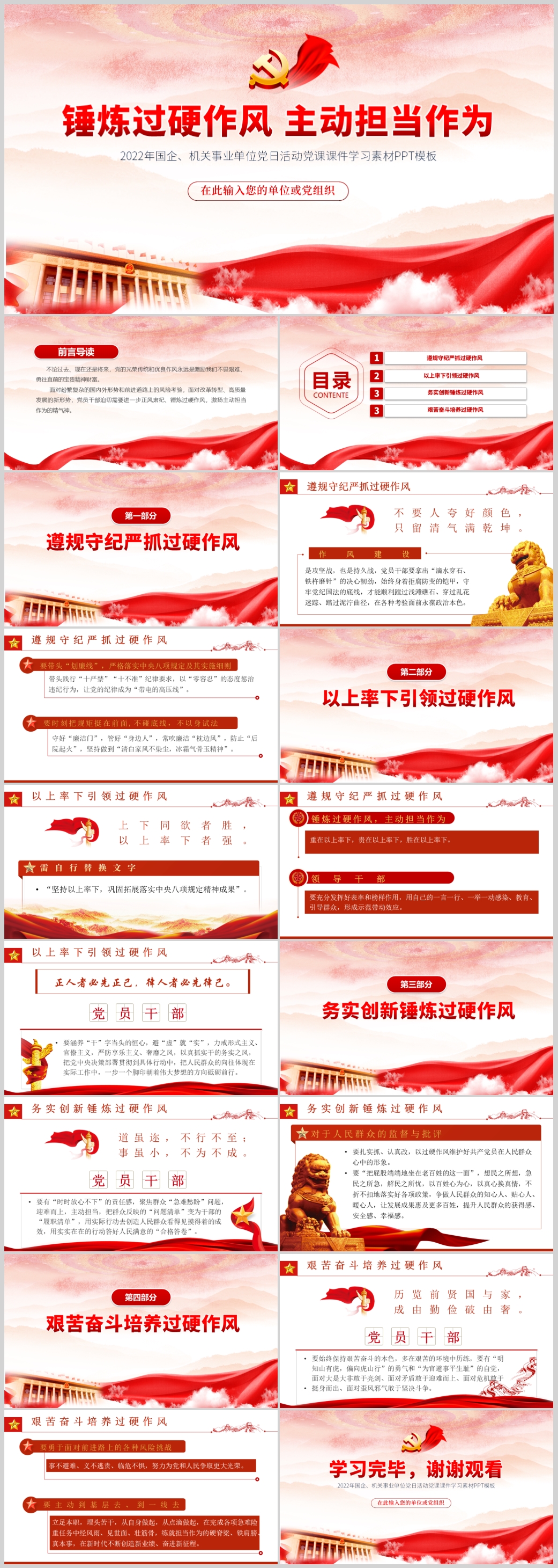 2022年锤炼过硬作风主动担当作为党风廉政党课PPT模板