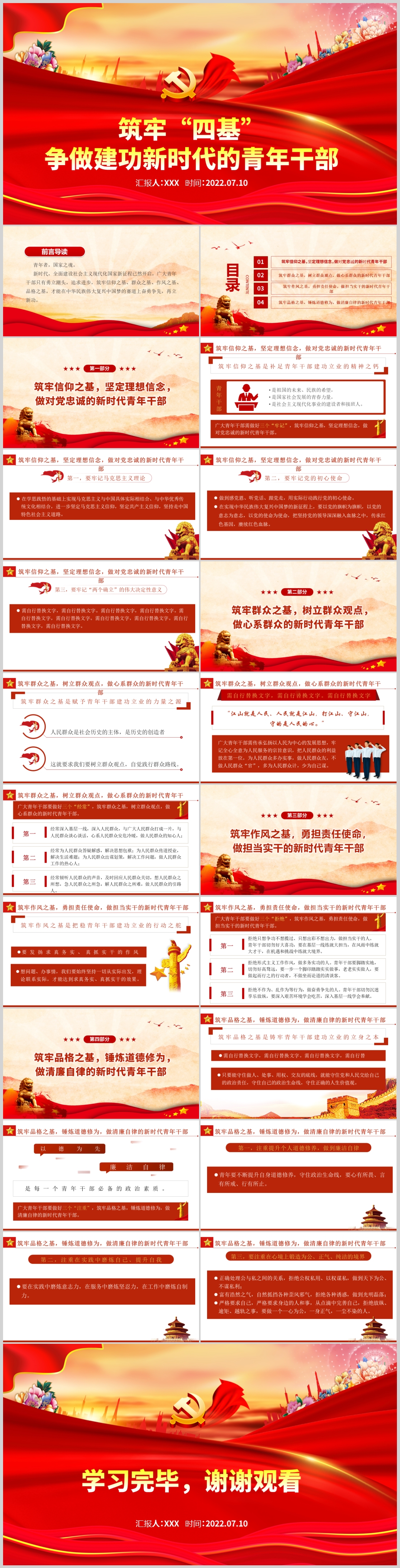 学习筑牢“四基”,争做建功新时代的青年干部党课PPT模板