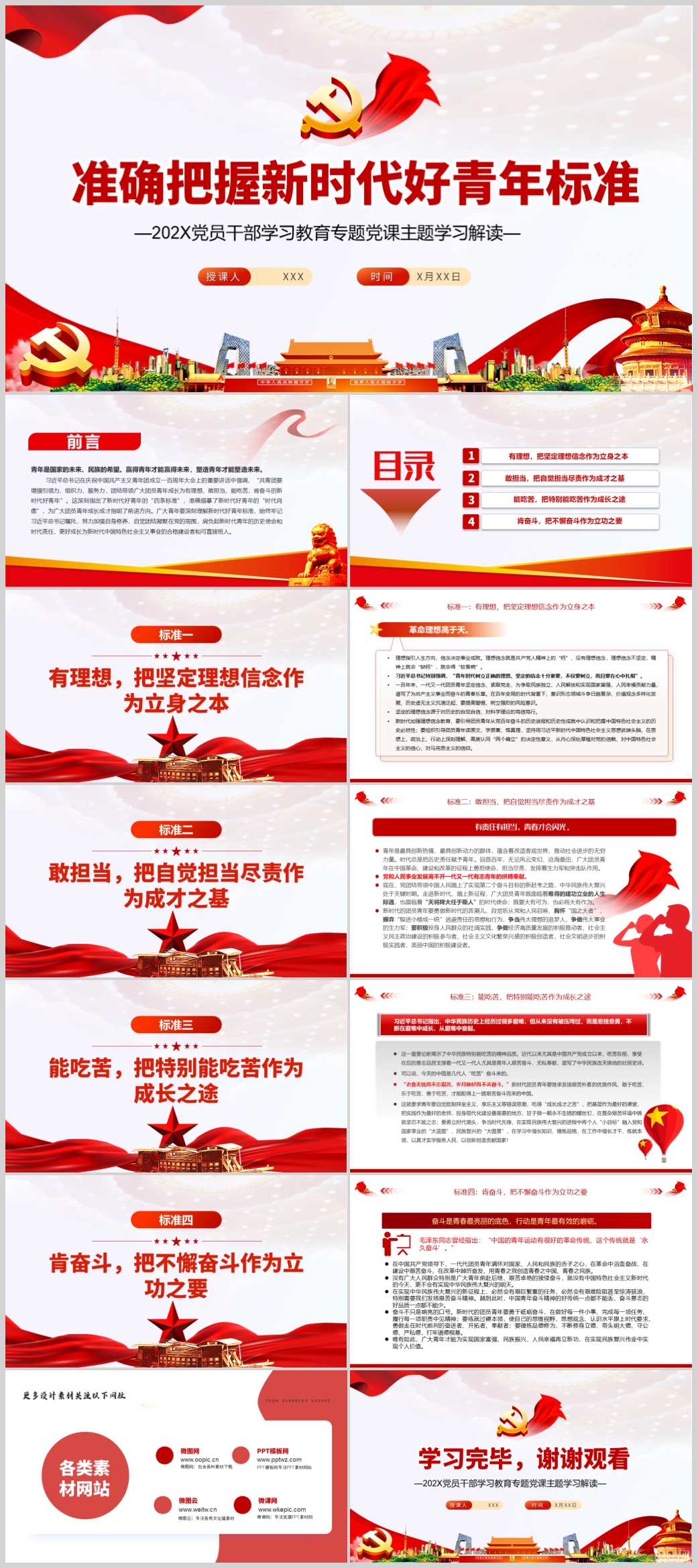 学习准确把握新时代好青年标准青年干部PPT模板(内含WORD演讲稿)