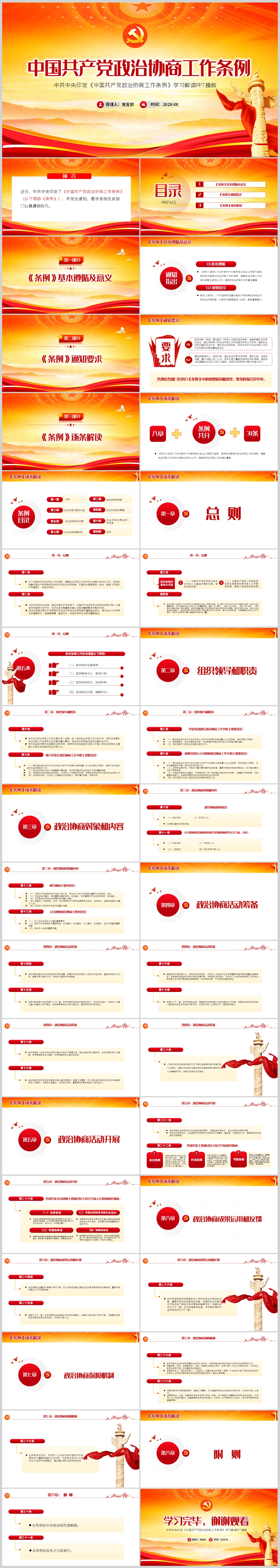 中国共产党政治协商工作条例学习解读PPT模板(内含WORD演讲稿)