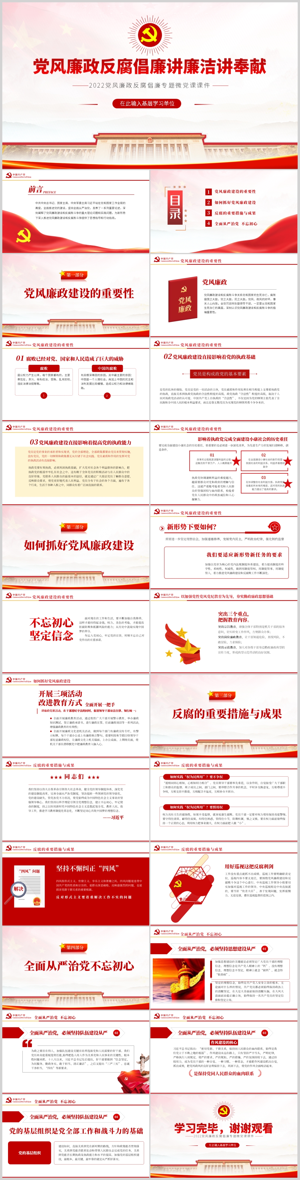 2022年党员干部要讲奉献党风廉政教育党课PPT模板