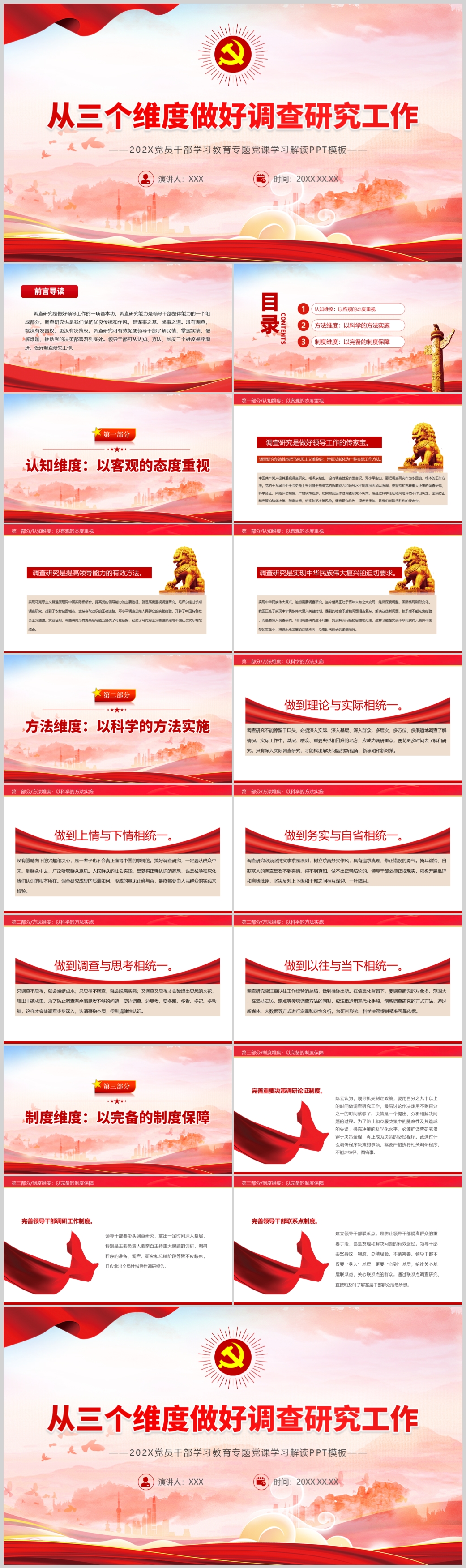 学习三个维度做好调查研究工作专题党课PPT模板(内含WORD演讲稿)