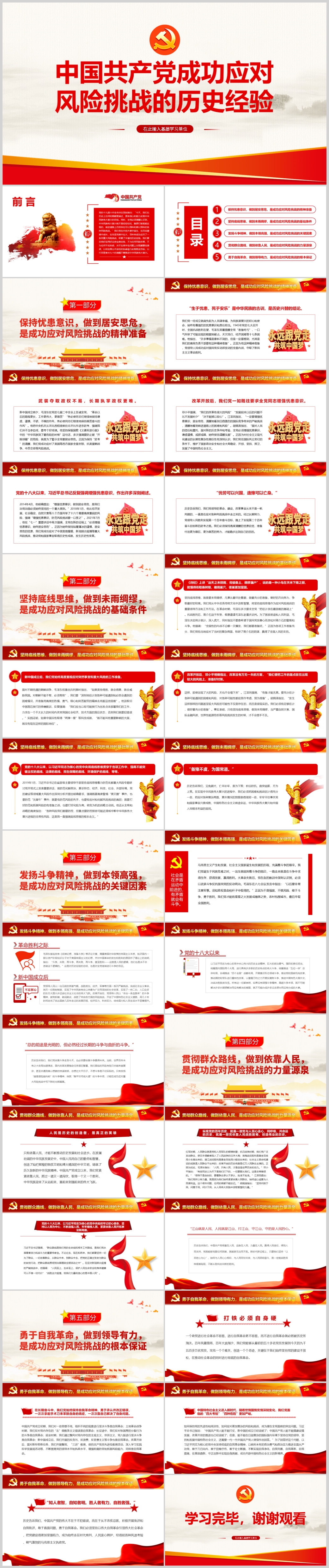 中国共产党成功应对风险挑战的历史经验主题党课PPT模板(内含WORD演讲稿)