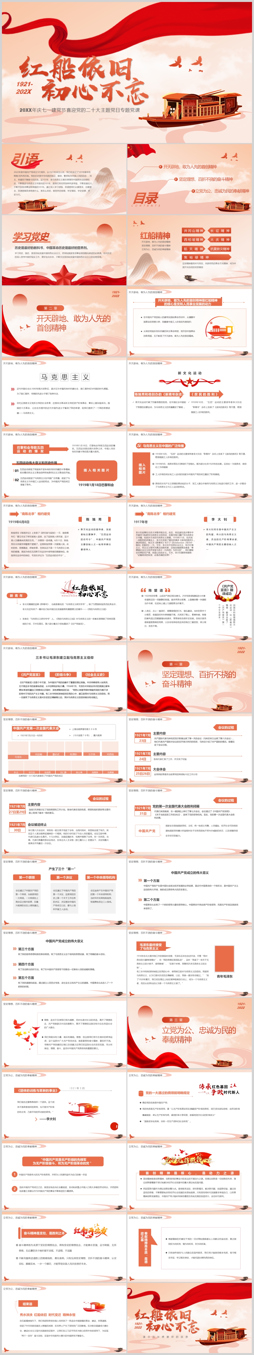 2022喜迎二十大七一建党节红船依旧初心不忘党课ppt模板(内含WORD演讲稿)
